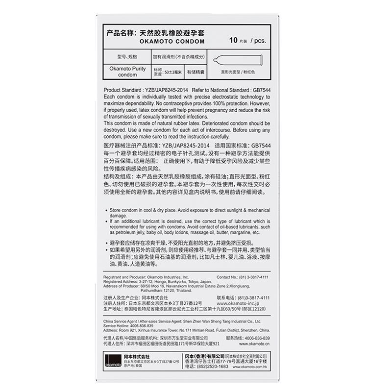【避孕润滑】冈本纯极限超薄10只装(产品实物包装以主图为准)